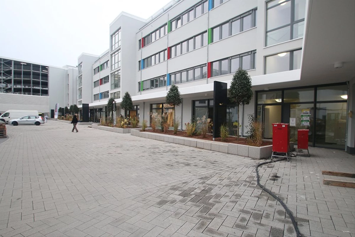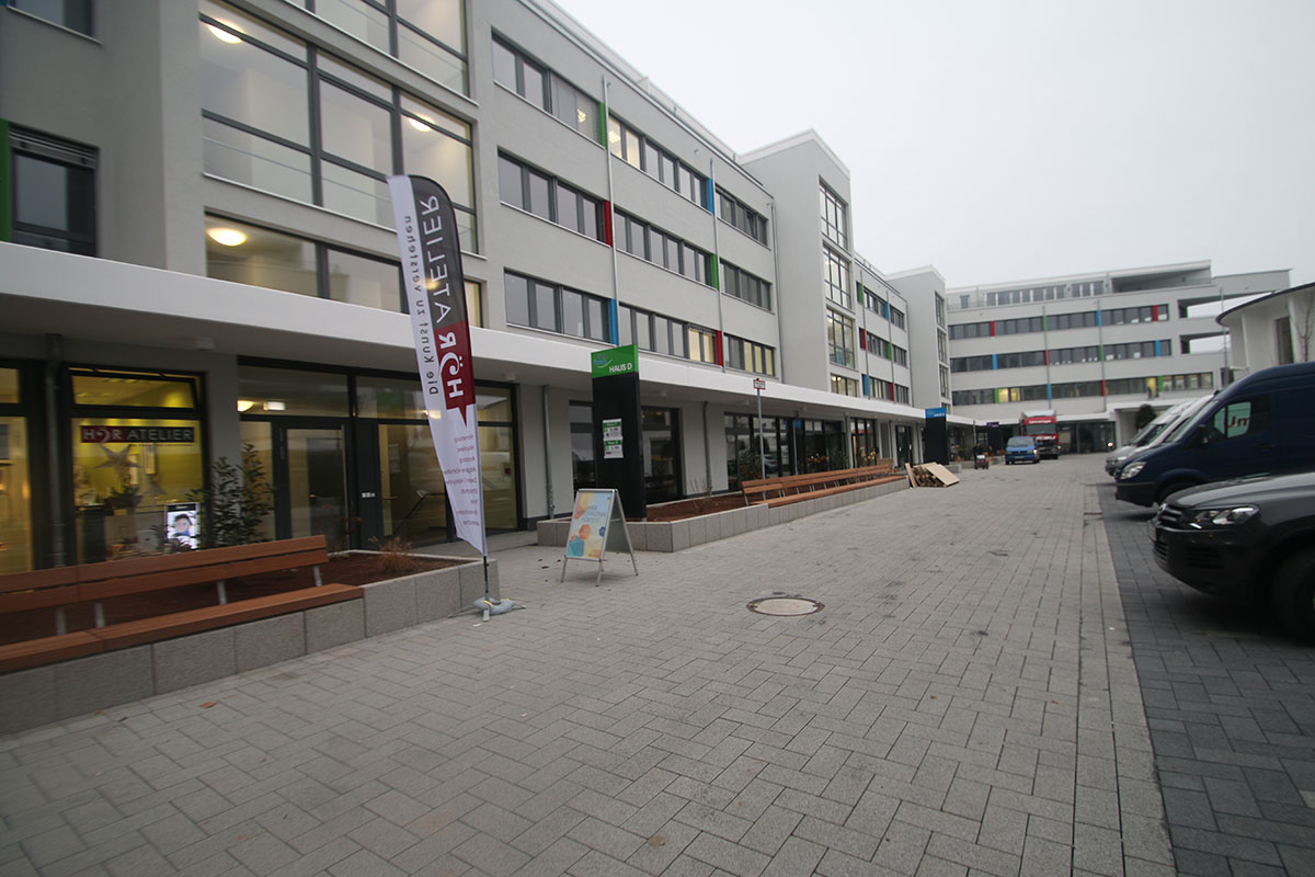 Ungefähr 2.500 m² werden als Wohnraum genutzt. 15 Mietwohnungen mit einer Grundfläche von 61 - 84 m² befinden sich in Haus A im 1. - 3. OG. Die 15 Penthousewohnungen befinden sich im 4. OG in Haus A sowie C - F und wurden alle verkauft.
